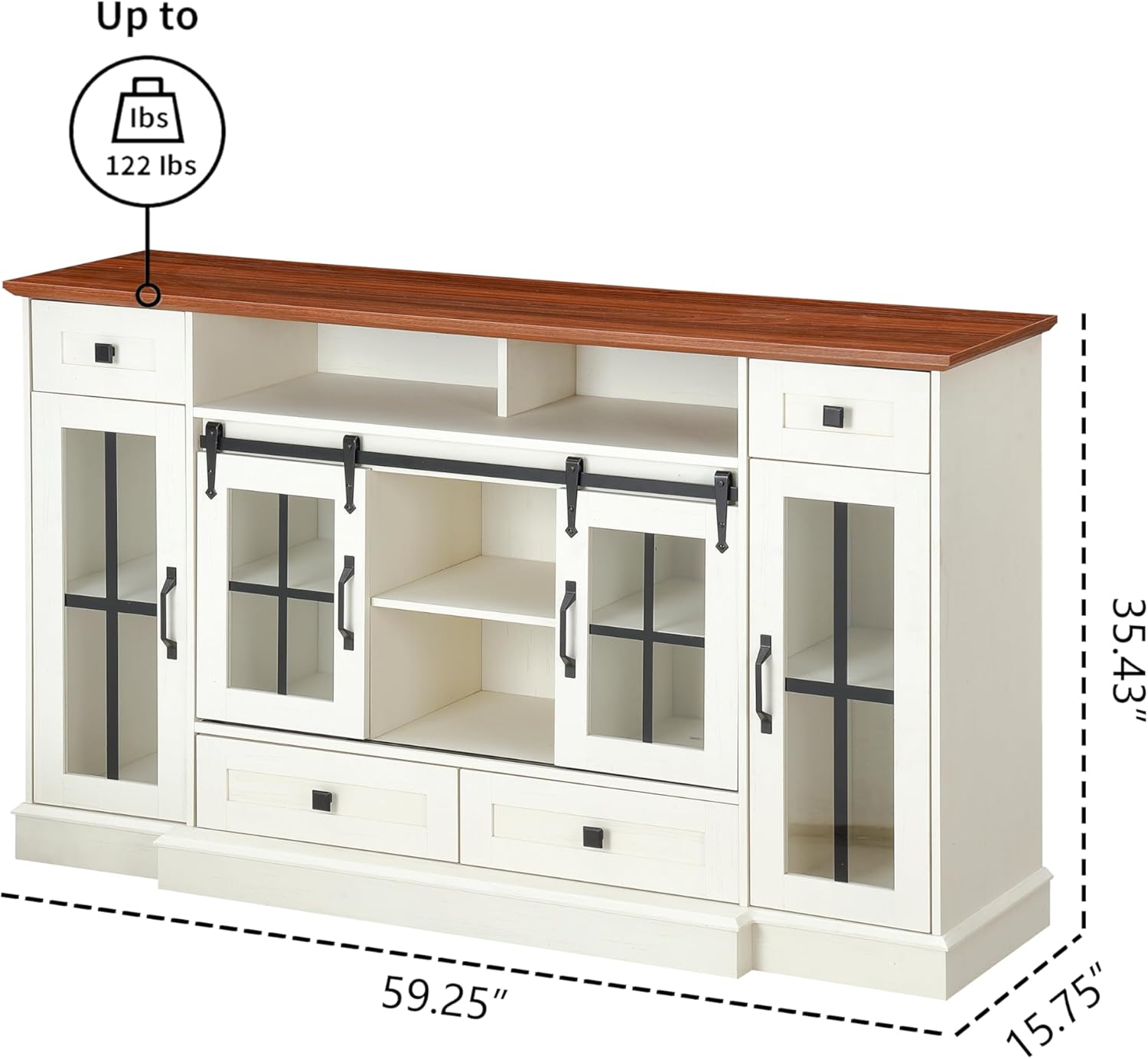 59.2" TV Stands for TV up to 65", Storage TV Cabinet,TV Table,Entertainment Center with Open Storage,TV Console,Media Console for Living Room and Bedroom,Sliding Doors,Antique White