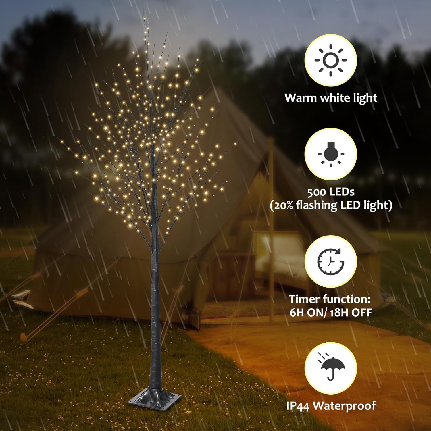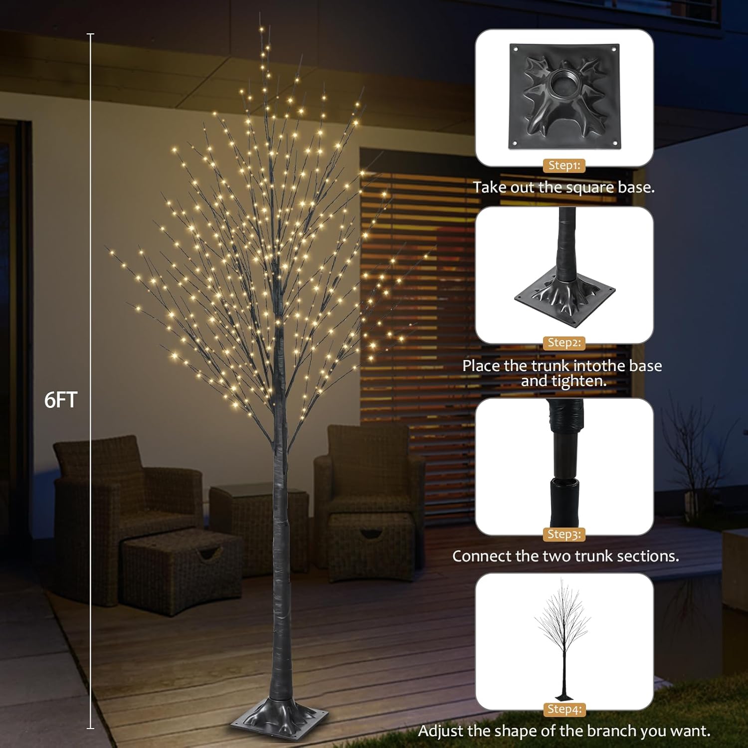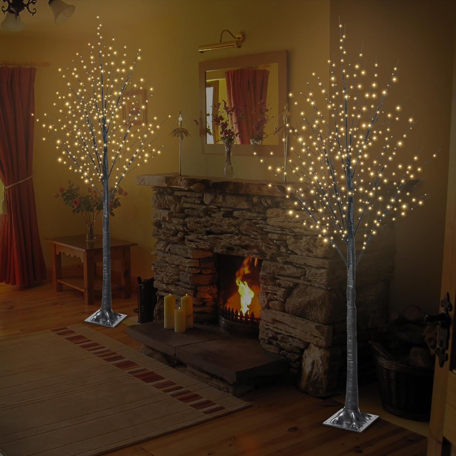 6FT Halloween Tree 500 LED Lighted Twig Tree with Twinkle Lights, LED Birch Tree with Timer for Outdoor Indoor Home Party Yard Easter Christmas Decoration (Warm White Light)