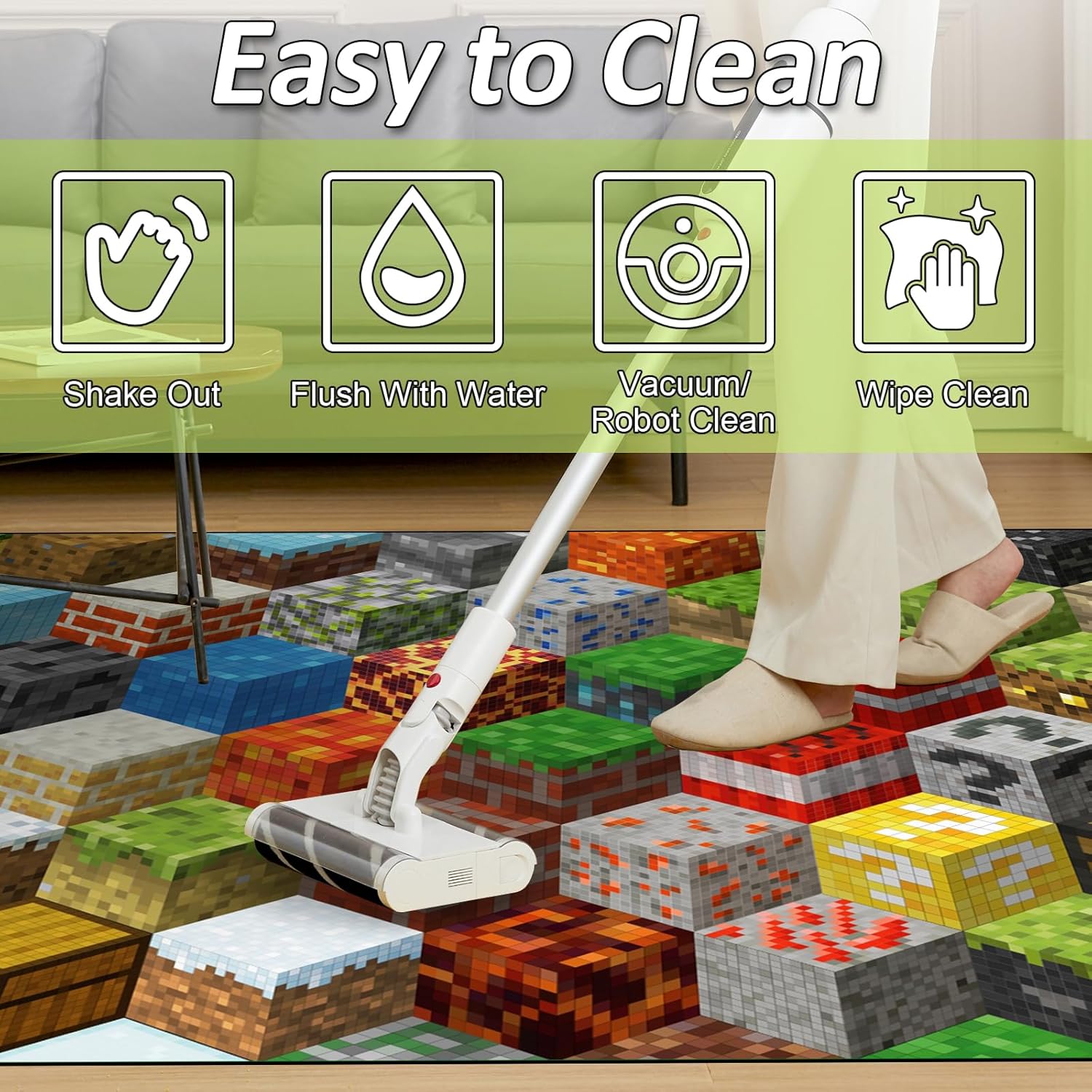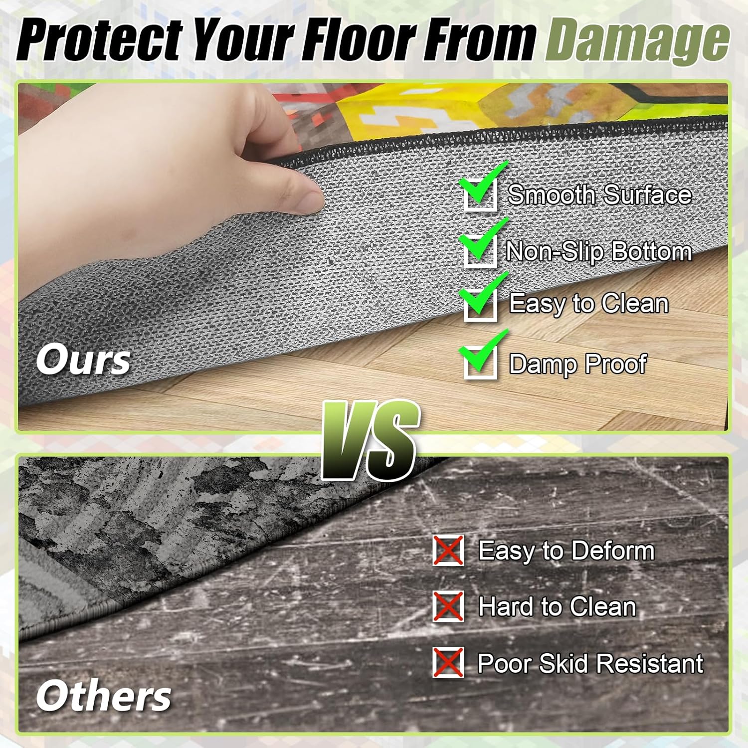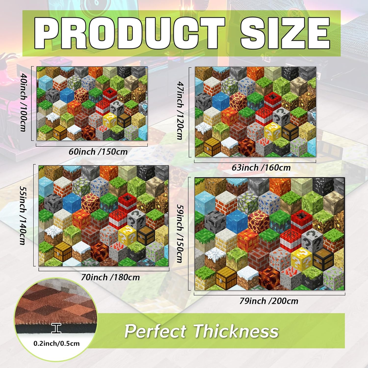 Block Game Rug Teen Boys Carpet with Pixel Games Element Decoration Mat, Cube Block Game Rugs for Boy’s Bedroom Living Room Playroom, Non-Slip Children Gaming Area Rugs (79" x 59")